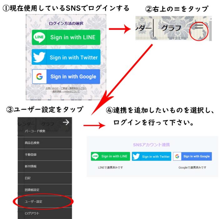 急にログインが出来なくなった。という事もあり得ますので複数のSNSでログイン連携する事を推奨いたします。